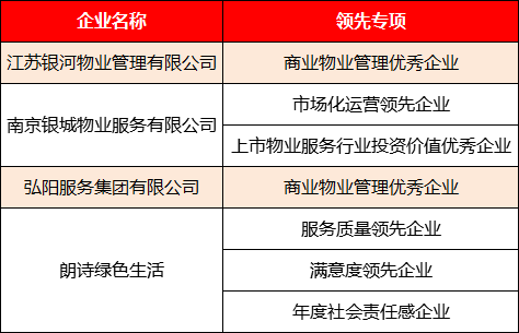 其中,苏宁银河物业、银城生活服务、弘阳服务集团、朗诗绿色生活作为领跑南京的物业企业,再次蝉联中国物业服务百强企业榜单,并且进入专项领先榜单,南京物业百强企业已成为中国物业行业发展的中坚力量。