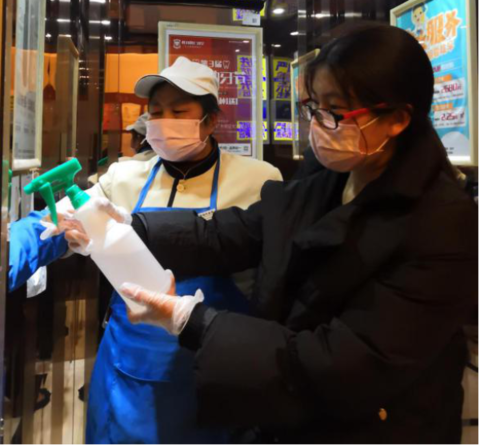 在主动上门说服有需要隔离的业主自我隔离后,她挺着日益突起的大肚子,每天协助社区检测业主体温并询问业主需求,帮业主代购生活必需品,给业主解决生活问题。为了业主更加安心的住在小区,她每天带着保洁阿姨,爬500层楼梯对每栋进行全面消毒,为的就是让业主们住的安心。