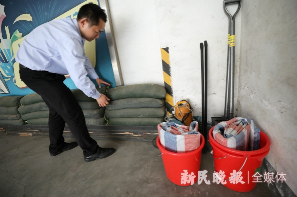 图说:梅雨季来临前,物业在准备防汛物资 新民晚报记者 周馨摄(下同)