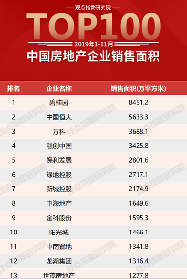 在近期出炉的2019年1-11月top100地产商销售金额来看,大部分仍保持略有增长,可以说这为物业公司未来的增长提供了庞大的物业储备。
