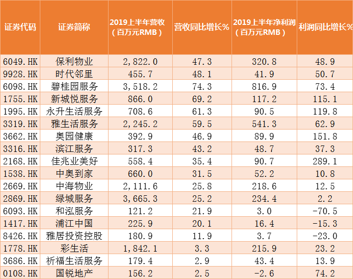 营收同比增速在40%以上就有8家,分别是碧桂园服务、新城悦、永升生活、雅生活、奥园健康、滨江服务,以及正在招股的保利物业和时代邻里。